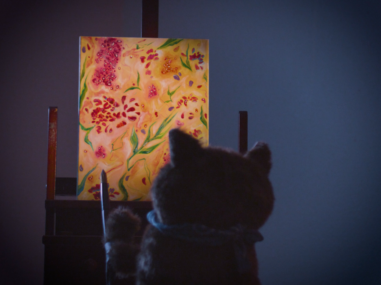 The film follows Max who, following a bout of creative constipation, discovers a newly painted masterpiece on his easel one morning. With the help of his friend Grey, Max finds that his cat, Rutabaga is painting while he sleeps. Max discovers that true creative expression flows through oneself rather than from oneself.